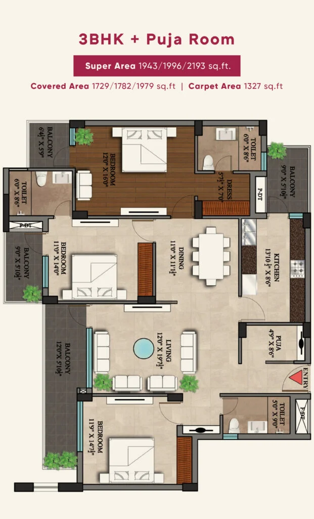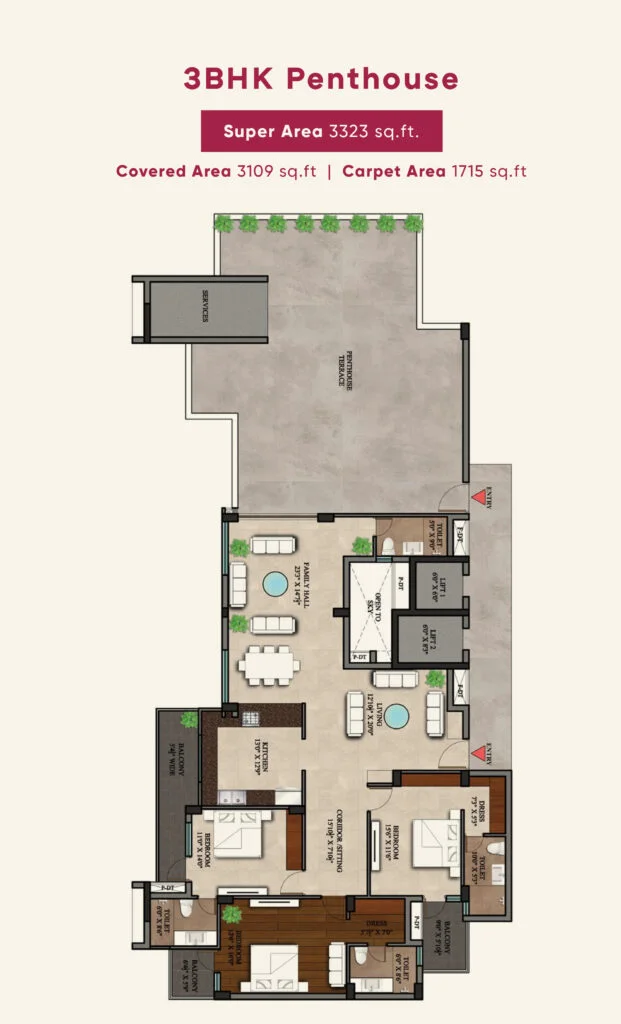 3 BHK + Servant room starting from ₹1.25 Cr